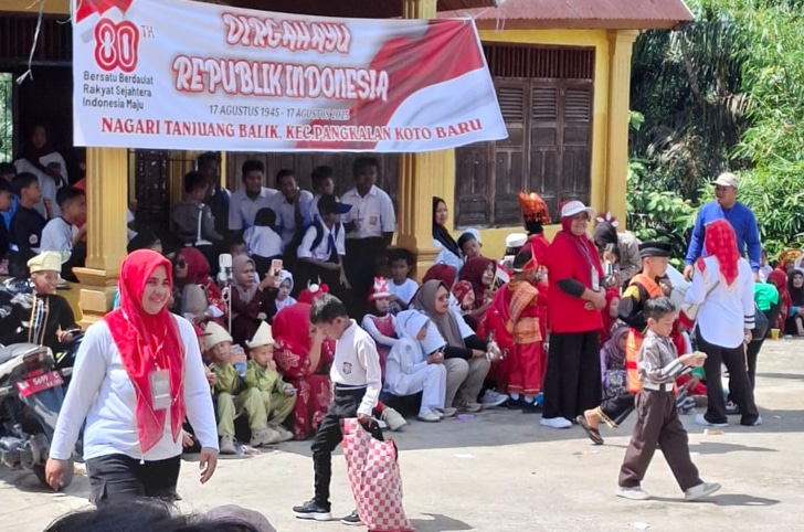 Tanjuang Balik  – Peringatan Hari Ulang Tahun (HUT) Kemerdekaan Republik Indonesia ke-80 di Nagari Tanjuang Balik berlangsung meriah. Tidak hanya kaum muda, tetapi para lansia, emak-emak, hingga anak-anak ikut tumpah ruah ke jalan dalam pawai kemerdekaan, Sabtu (17/8/2025).